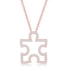 Sterling Silver Rose Gold Plated Cubic Zirocnia Open Puzzle Piece Necklace