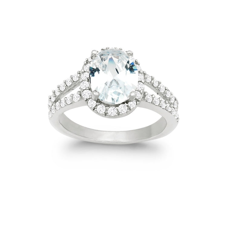 Sterling Silver Large CZ Engagement Ring